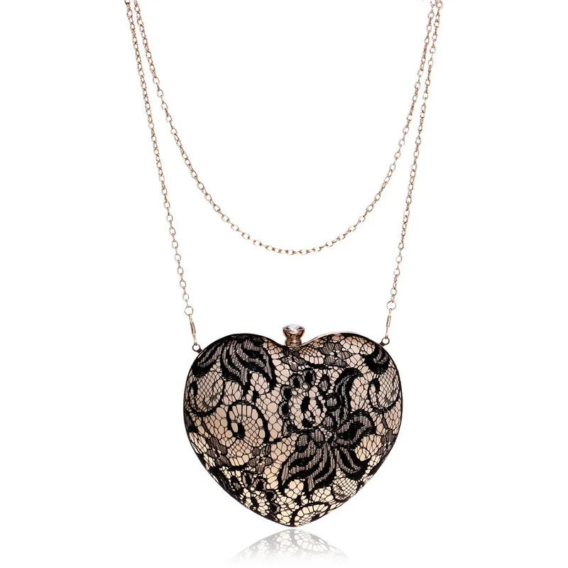 Add a touch of romance and sophistication to your outfit with this Black Lace Heart-Shaped Purse. Featuring a three-dimensional design and delicate lace detailing, this chic accessory is perfect for parties, dinners, or special occasions.